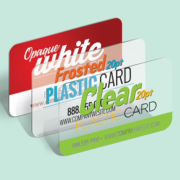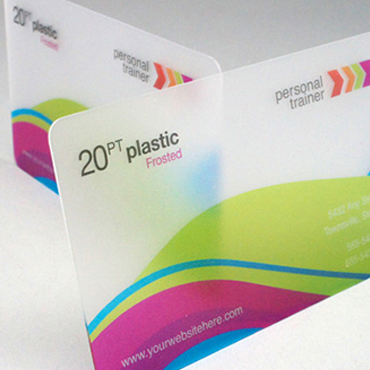 Plastic Cards are very durable and printed on 20PT Plastic Opaque White, Frosted, and Clear stocks.